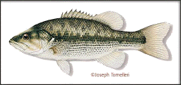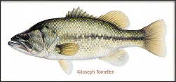 its home on Cadron Creek. The notch between the dorsal fins is shallow, and the upper jaw doesn't extend much, if any, behind the eye. It has a lengthwise row of dark spots below the dark midside stripe. Although these fish usually weigh between 1-2 pounds Cadron Creek yielded state-record-size "spots" nearing 6-7 pounds. Spinnerbaits, jig and pork frog combinations, live crayfish and crayfish-imitation artificials are among the best baits. |