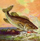 looks, it makes up for in size and good taste. Many weigh 3 to 10 pounds, but 25 to 50 pounders are pretty common. Color is yellow to light brown, usually mottled with dark brown or black. The tail is only slightly forked, and the lower jaw projects out from the flattened head. Most are caught on live minnows, bream or goldfish. |