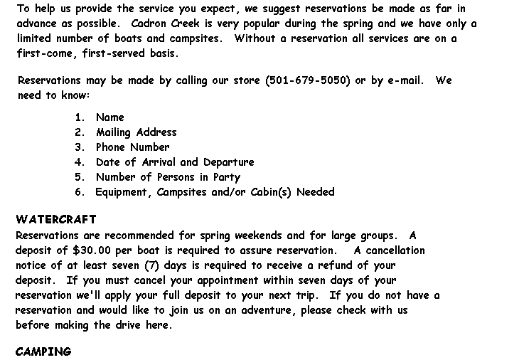 campsites are on a first-come, first-served basis. Reservations are also advised on
