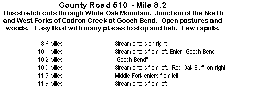 From Highway 107 to the Hardin Bridge on county road 310, the creek flows along side White Oak Montain on the north for the