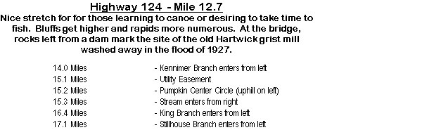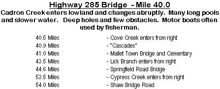 first few miles. This stretch has few difficulties and is floated more by fishermen than canoeists because of the many long pools