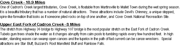 Cadron and is located about two miles beyond the put-in..
