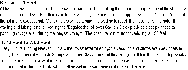 experience on Cadron Creek or on Class III whitewater you should avoid paddling Pinnacle Springs and Cove