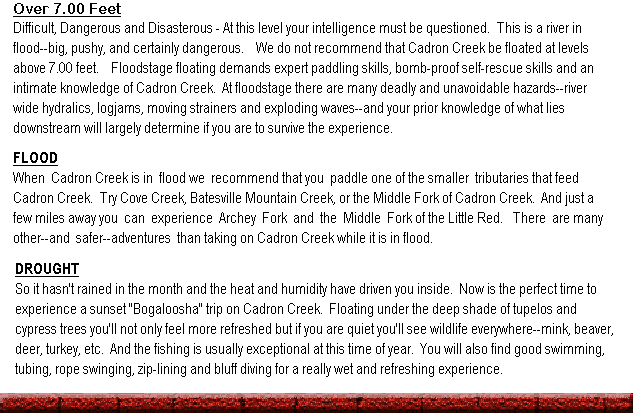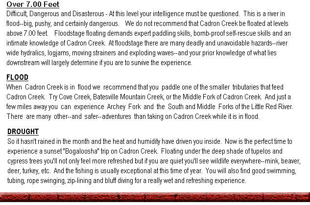 Difficult and Dangerous - Just short of flood stage Cadron Creek should not be paddled at this level unless the