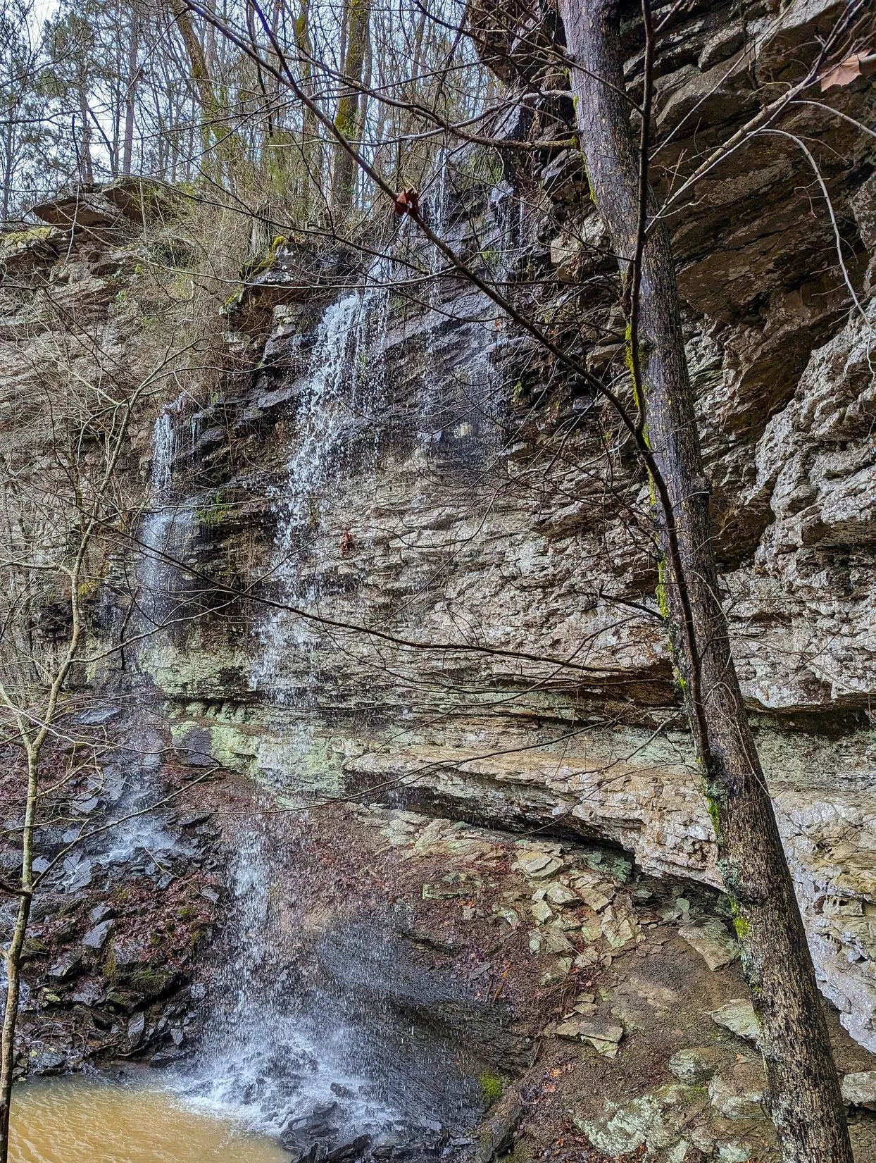 The bluffs of Atoka Sandstone that border the Cadron give rise to hundreds of waterfalls and cascades. The "B Falls" can all be seen from the river -- especially during the winter when the trees are bare -- and provide paddlers on the Hartwick Mill Run one more special memory and an opportunity to shower. Big B Falls.