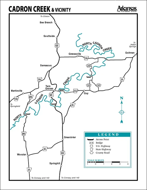 This stretch cuts through White Oak Mountain. Junction of the North and Middle Forks of the Cadron. Lots of wildlife!